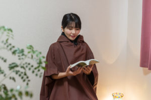 袖ありのマントですので、無理なく、ご自身だけのリラックスしたひとときをお過ごしください♪